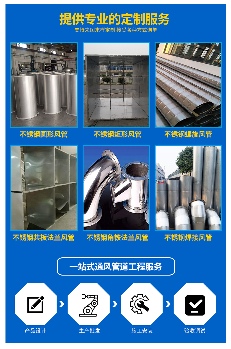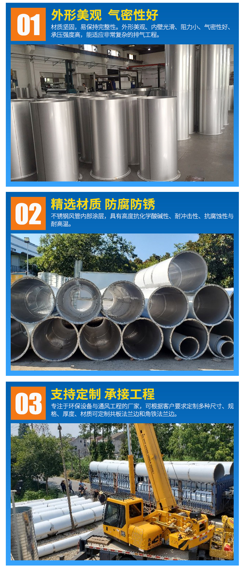 1、外形美觀、內(nèi)壁光滑、阻力小、氣密性好、承壓強度高,能適應(yīng)非常復(fù)雜的排氣工程。