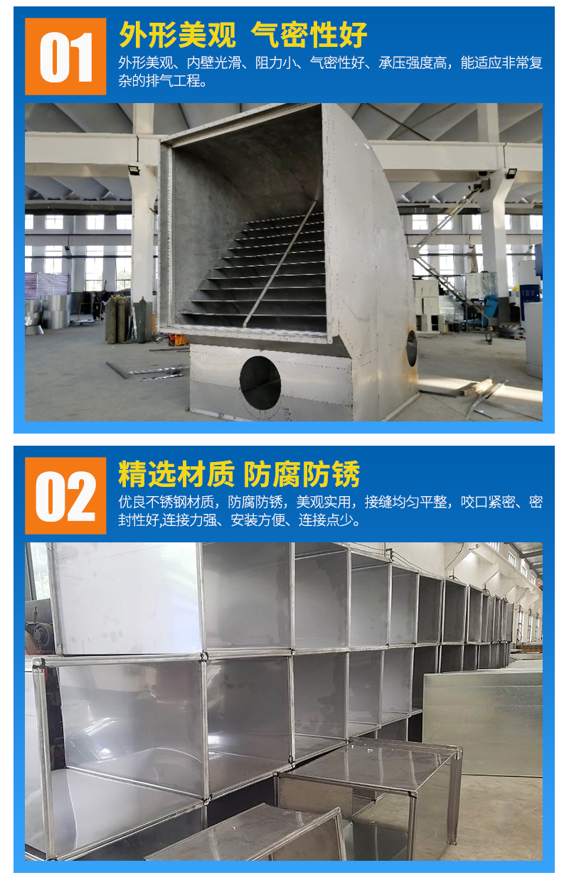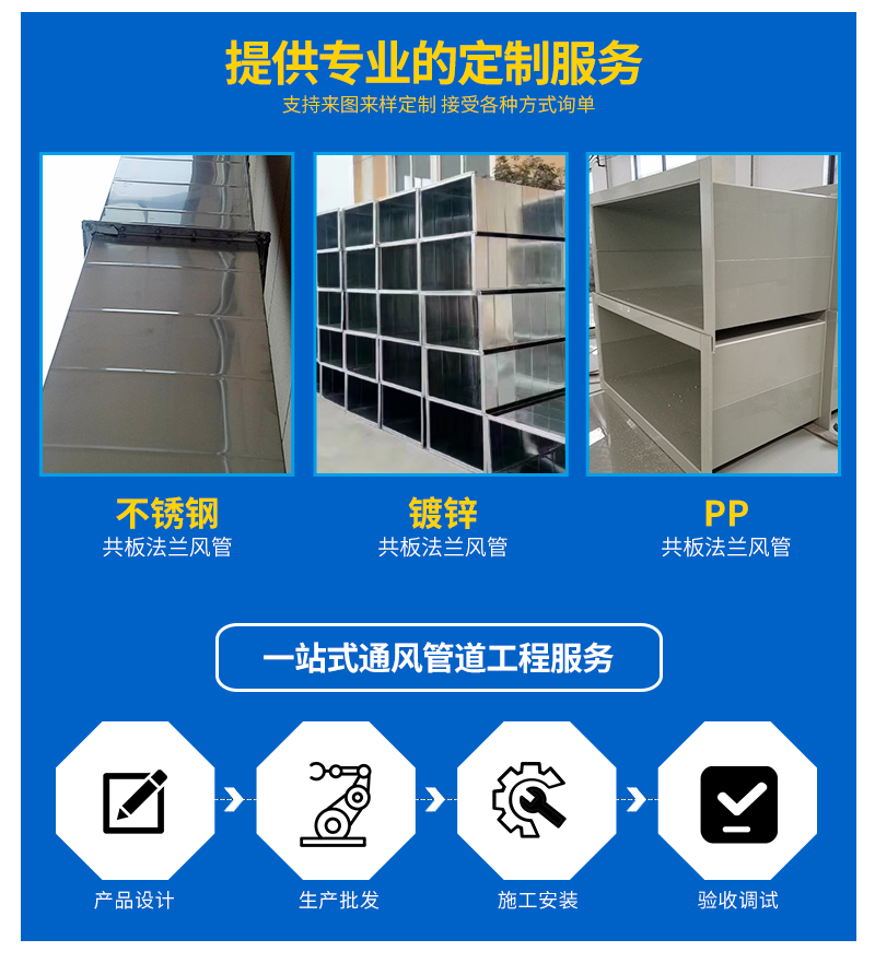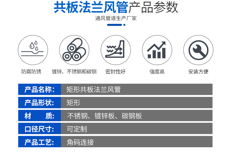共板式法蘭風(fēng)管又稱無法蘭風(fēng)管,其制作形式比傳統(tǒng)的矩形風(fēng)管加工速度更快捷、更方便、更小的漏風(fēng)率。其優(yōu)點(diǎn)是節(jié)省材料,減少工程投資;漏風(fēng)量小,降低能耗,節(jié)省運(yùn)行費(fèi)用。